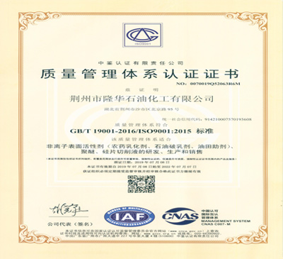獲得了GB/T19001-2016/ISO19001:2015版質(zhì)量管理體系認(rèn)證書,GB/T24001-2016/ISO14001:2015版環(huán)境管理體系認(rèn)證證書,ISO45001:2018版職業(yè)健康管理體系認(rèn)證證書,通過(guò)了省,市安全,環(huán)保考評(píng),監(jiān)測(cè)頒證,獲得“安全生產(chǎn)標(biāo)準(zhǔn)化”三級(jí)企業(yè)證書!